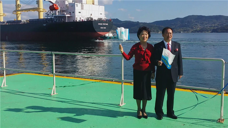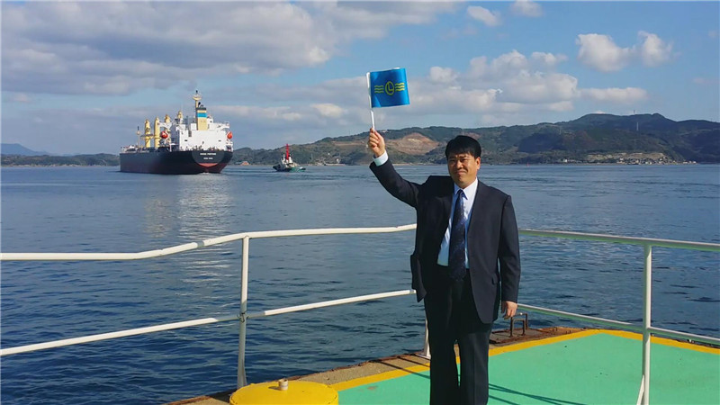 此次接船,惠通公司楊克杰總經(jīng)理受長海船務公司桂總邀請,一同前往日本大島造船所,共同見證了“財神”輪的交接,并出席了“財神”輪的剪彩儀式。