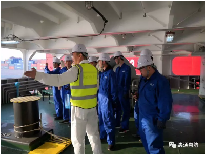 “加強(qiáng)校企合作,匯聚培養(yǎng)合力,提升學(xué)生職業(yè)競(jìng)爭(zhēng)能力”。作為職教周的一部分,我司同天津海運(yùn)職業(yè)學(xué)院緊密合作,于4月12日開(kāi)展惠通課堂活動(dòng),安排該校輪機(jī)工程學(xué)院的7名優(yōu)秀學(xué)生代表在帶隊(duì)老師許裕東的帶領(lǐng)下于天津港登上 “弘泰227”輪,進(jìn)行認(rèn)識(shí)學(xué)習(xí),現(xiàn)場(chǎng)感受船舶的真實(shí)環(huán)境。我司賈啟志船長(zhǎng)和朱有順船長(zhǎng)帶領(lǐng)學(xué)生現(xiàn)場(chǎng)觀摩船舶靠泊,為學(xué)員講解船舶設(shè)備和公司情況,向同學(xué)們提出期望和祝愿。在船的船員帶同學(xué)們參觀駕駛臺(tái)、船員生活區(qū)、集控室、機(jī)艙設(shè)備、系泊設(shè)備、消防救生設(shè)備。船員們?yōu)閷W(xué)生主要講解了主機(jī)、輔機(jī)、油水分離器、鍋爐、分油機(jī)等等主要機(jī)艙設(shè)備和值班要求,他們結(jié)合自身多年的工作經(jīng)驗(yàn)為同學(xué)們講解每個(gè)設(shè)備的功能,以及在實(shí)際工作中的注意事項(xiàng),隨后同學(xué)們又對(duì)自己專業(yè)存在的疑惑請(qǐng)教輪機(jī)員。