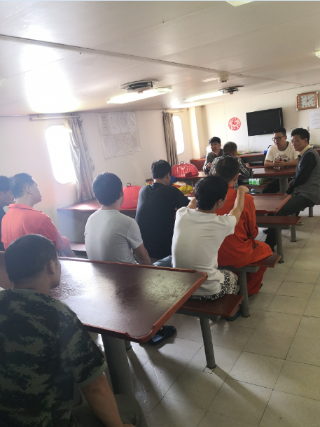 楊總、高維主管及船東何經(jīng)理一行人乘坐小船,于早上10點到達(dá)“港洋”輪所在的黃岐外錨地,走過舷梯,進入船艙,來到船長辦公室。楊總通過座談的方式向陳增寶船長了解“港洋”輪近期的船舶運營情況及船員的工作和生活情況。隨后楊總結(jié)合公司規(guī)章制度及近期的安全生產(chǎn)情況,就如何加強與船東配合及溝通,對全體船員進行傳達(dá)和溝通,同時著重說明了接船后的一些具體的要求和工資待遇,取得了不錯的效果。