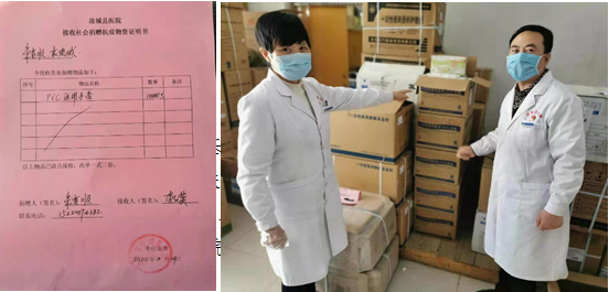 ? ? ? 考慮到農(nóng)村防控基礎(chǔ)薄弱的實(shí)際情況,他還在市場醫(yī)護(hù)資源匱乏的情況下,主動聯(lián)系捐贈醫(yī)護(hù)用品。經(jīng)過長時間的艱難采購過程,為河北省故城縣農(nóng)村醫(yī)院捐贈了10000只一次性醫(yī)用手套,現(xiàn)已全部送達(dá)當(dāng)?shù)蒯t(yī)院并用于一線防控工作。朱船長說:“手套送到了,我也踏實(shí)多了!是那些逆行奔赴武漢的白衣天使感染了我,他們放棄了與家人團(tuán)聚的時間,冒著被疫情感染的危險奮戰(zhàn)在抗擊疫情一線,為抗擊病毒默默奉獻(xiàn),作為一名共產(chǎn)黨員這是我應(yīng)該做的!”是的,黨員干部的率先垂范正是我們共克時艱的不竭動力,全體黨員群眾一定會以你們?yōu)榘駱?,盡一己之力奉獻(xiàn)愛心,讓黨旗在疫情防控第一線高高飄揚(yáng)……
