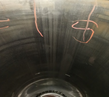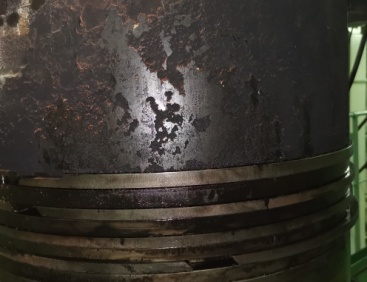 通常說(shuō)的拉缸,也即粘著磨損為:柴油機(jī)運(yùn)轉(zhuǎn)時(shí),活塞裙、活塞環(huán)和氣缸套工作表面在異常情況下出現(xiàn)擦傷、劃傷、撕裂和咬死的現(xiàn)象,分為輕微拉缸、嚴(yán)重拉缸(咬死),本船的粘著磨損屬于“撕裂”粘著磨損。