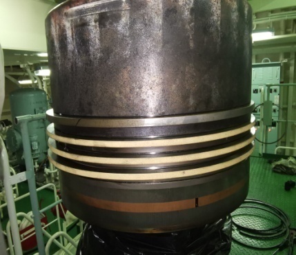 修復(fù):因船無(wú)活塞令備件庫(kù)存,只好挑選出一道可以使用的舊令修復(fù)后換用在第一道,第2-4道令沿用原令。