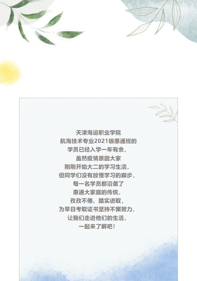 天津海運(yùn)職業(yè)學(xué)院2021級(jí)惠通班學(xué)習(xí)側(cè)記 時(shí)間:2022-10-24 點(diǎn)擊:2160次 上一篇:當(dāng)好公司宣傳員——天津海運(yùn)職業(yè)學(xué)院2021級(jí)惠通班生活側(cè)記 下一篇:天津惠通開(kāi)足馬力、鉚足干勁,以實(shí)際行動(dòng)獻(xiàn)禮黨的二十大