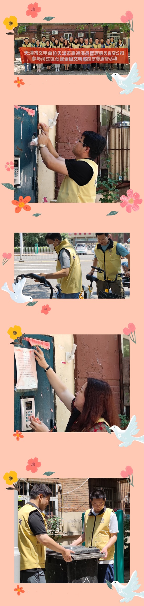結(jié)合爭創(chuàng)文明單位活動要求,開展“爭做文明有禮天津人”之樓道革命志愿服務(wù)活動,對社區(qū)內(nèi)樓道堆積的雜物進(jìn)行清理,清除樓門亂貼的小廣告等,保證樓門干凈整潔。