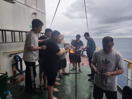 甲板部在船無非就是日常保養(yǎng),敲銹刷漆,烈日當空,汗流浹背是常態(tài)。下了班,工作服放進洗衣機里,洗完澡去餐廳開啤酒,炎炎烈日沒有什么比喝一瓶冰鎮(zhèn)啤酒再爽的事了。餐桌上三五同事談笑間吃飯喝酒好不快活。從業(yè)以來我感覺船上最重要的就是安全,酒不宜多喝,適可而知。其次重要的就是工作氛圍,大家齊心協(xié)力其樂融融,那么就顯得工作很快樂,畢竟船上就這么幾個人,抬頭不見低頭見,氛圍好了心力也就足了。教員曾說過:“心力一到,天下之事莫不能成也”。
