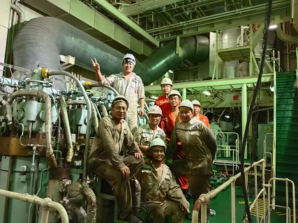 在機艙里,每一位輪機員就像老大哥一樣特別親切,有什么問題只要你問,他們都會耐心地給你解答,業(yè)余時間我們也會坐在一起聊聊天、打打牌、釣釣魚。大家其樂融融,相處得十分融洽。