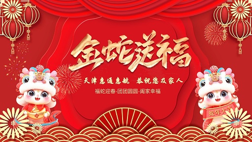 祥龍辭舊,靈蛇迎新!值此農(nóng)歷乙巳年新春佳節(jié)來(lái)臨之際,我謹(jǐn)代表天津惠通、惠航公司,向長(zhǎng)期以來(lái)關(guān)心支持公司發(fā)展的廣大客戶、合作伙伴和社會(huì)各界朋友,向在過(guò)去一年里拼搏奮斗的每一名船岸員工以及退休干部員工、職工家屬致以誠(chéng)摯問(wèn)候和新春祝福!祝大家蛇年大吉,巳巳如意!