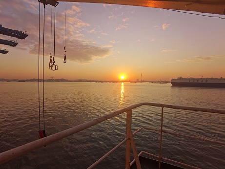初到船上,我對甲板工作的認(rèn)知充滿了未知與好奇。在學(xué)校學(xué)習(xí)的時候,我了解到甲板部承擔(dān)著船舶航行安全、貨物裝卸、船體維護(hù)等關(guān)鍵職責(zé)。可當(dāng)真正踏上甲板,面對龐大的船舶設(shè)備和復(fù)雜的操作流程時,才深知實(shí)踐與理論的差距。從敲銹、刷漆等基礎(chǔ)保養(yǎng)工作,到協(xié)助操舵、拋錨等重要操作,每一項(xiàng)工作都需要嚴(yán)格的規(guī)范和精準(zhǔn)的操作。我逐漸明白,甲板工作不僅是體力的付出,更是技術(shù)與責(zé)任的結(jié)合,容不得半點(diǎn)馬虎。