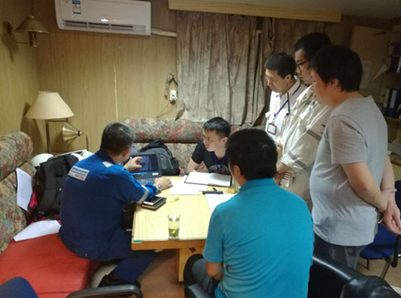 在臨時審核過程中,驗船師對對船舶進行體系文件進行了非常細致的檢查,也對全船進行了巡視,對審核過程中發(fā)現(xiàn)的問題與不足提出了建設性的意見和建議,為公司以后對船舶的管理提供幫助。最后,宣布“OCEAN TRADE”輪在安全管理體系、國際船舶保安規(guī)則、國際勞工公約方面符合公約和規(guī)則要求,給予頒發(fā) SMC/ISSC/MLC臨時審核證書。